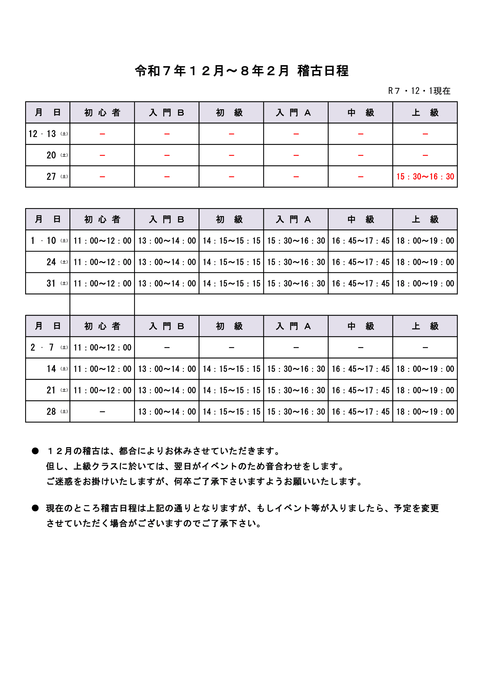 稽古日程